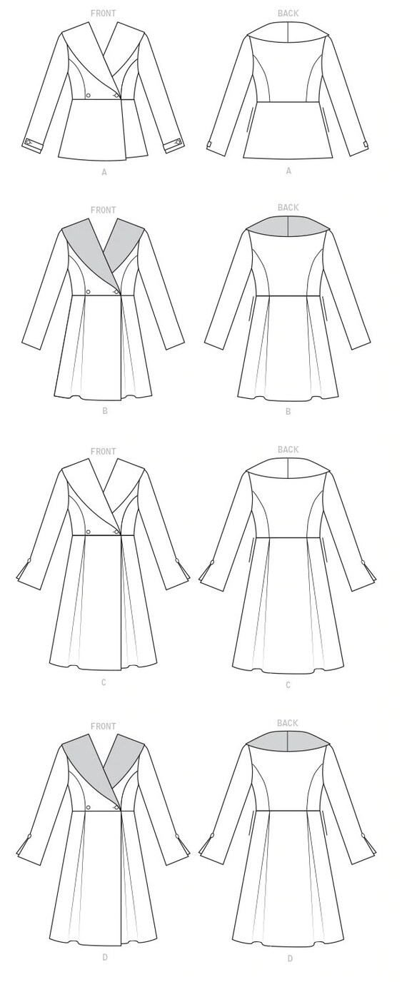 Womens Fit And Flare Rounded Or Shawl Collar Coats 3 Lengths Etsy Coat Pattern Sewing Fit And Flare Coat Vogue Patterns